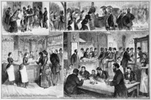 Sonntags in der Volksküche, Die Gartenlaube (1883), Originalzeichnung von H. Lüders, Wikimedia Commons.
