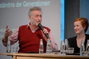 Micha Brumlik und Teresa Bücker (Autorin, Netzaktivistin und Redaktionsleiterin EDITION F.), Foto: www.stephan-roehl.de, Heinrich Böll Stiftung. Wikimedia Commons
